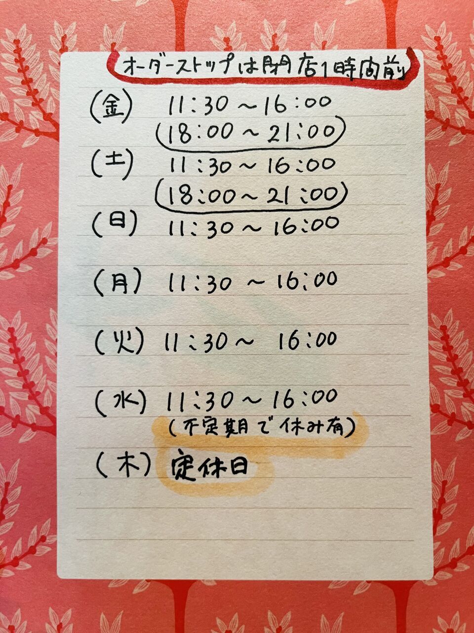 金、土の夜営業時間のみ🌙